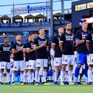 In support of MLS WORKS Soccer For All campaign, LA Galaxy players warmed up in specialty pregame shirts which were later signed by the players and available for fans to bid on, with proceeds benefitting inclusive programming in the Los Angeles community.