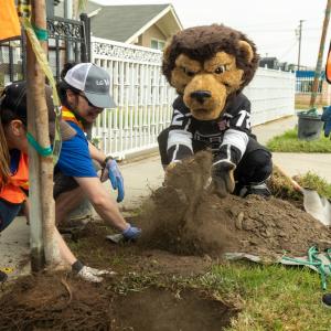 In partnership with Southern California Gas Company. TreePeople and One Tree Planted, 40 volunteers worked alongside team mascot, Bailey, to plant 15 trees in residential neighborhoods to enhance shade equity in the underserved areas.