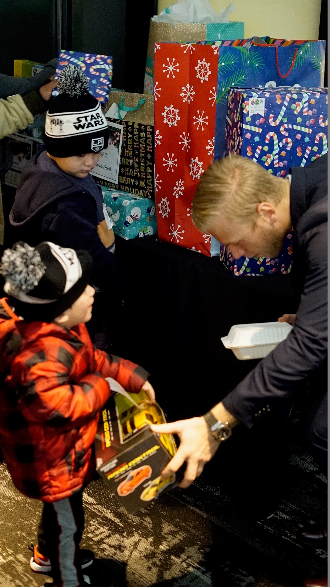 Following the Kings’ overtime victory, the club’s eighth win in a row, the entire team joined the families in the suite to open presents donated by the team – which included clothing, home appliances, toys, books, American Express gift cards, etc. – and to wish them a happy holiday season.