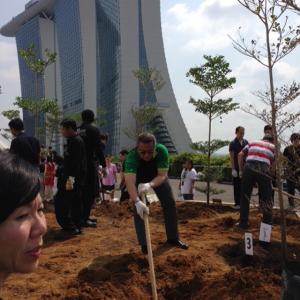 At Marina Bay Sands in Singapore, 8,677 green actions were completed. One example of a collaborative effort was 140 team members working together to plant trees on the rooftop of the Sands Expo and Convention Center to make the property greener. One mature tree can supply a person with enough oxygen for two years while consuming up to 48 pounds of CO2 for each of those years, benefiting both the environment and overall air quality.
