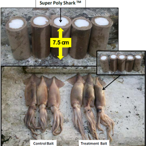 The “Super Polyshark,” designed by Florida researchers Dr. Eric Stroud and Dr. Patrick Rice, is a pellet that fishers insert into squid bait before they place on longline hooks. The pellet dissolves in the water, creating an odor that repels sharks.