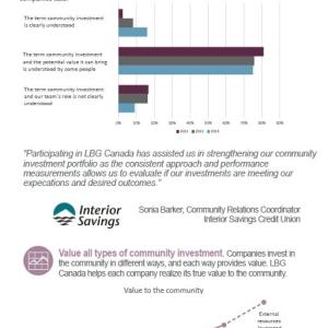 LBG Canada is currently in the middle of the 2014 Audit and Benchmarking cycle, with 95% of participants submitting their data for audit. So far this year, we have audited over 40,000 community investment transactions revealing $339 million in LBG Canada company investment and $48 million in external resources leveraged. Community investment auditing is an important process as it results in a clear understanding of the value of an overall community investment portfolio. We will be completing the 2014 LBG Canada benchmarking audit by the end of April and will communicate those results with our members at that time.