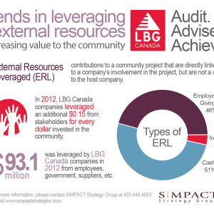 The attached infographic illustrates LBG Canada company community investment trends specific to the leveraging of external resources. In our last post of this series, we discussed the concept of external resources leveraged (read more here) and the value it offers to an overall community investment portfolio.
