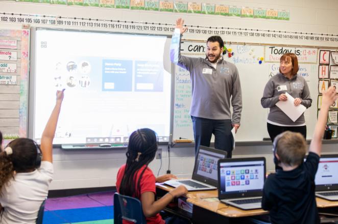 Mrs. Janice Smith’s second grade classroom participated in the Hour of Code activity during Computer Science Education Week. Seeing the importance of computer science education to future success firsthand, volunteers Carissa Spencer and Josh Remacle, both part of Koch’s digital workforce team, led the “Hour of Code” in Mrs. Smith’s class.