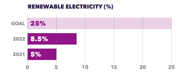 - Renewable energy: Increase utilization of renewable energy by exploring opportunities for onsite renewable generation, procuring renewable energy where available, and purchasing Renewable Energy Certificates (RECs) from credible sources