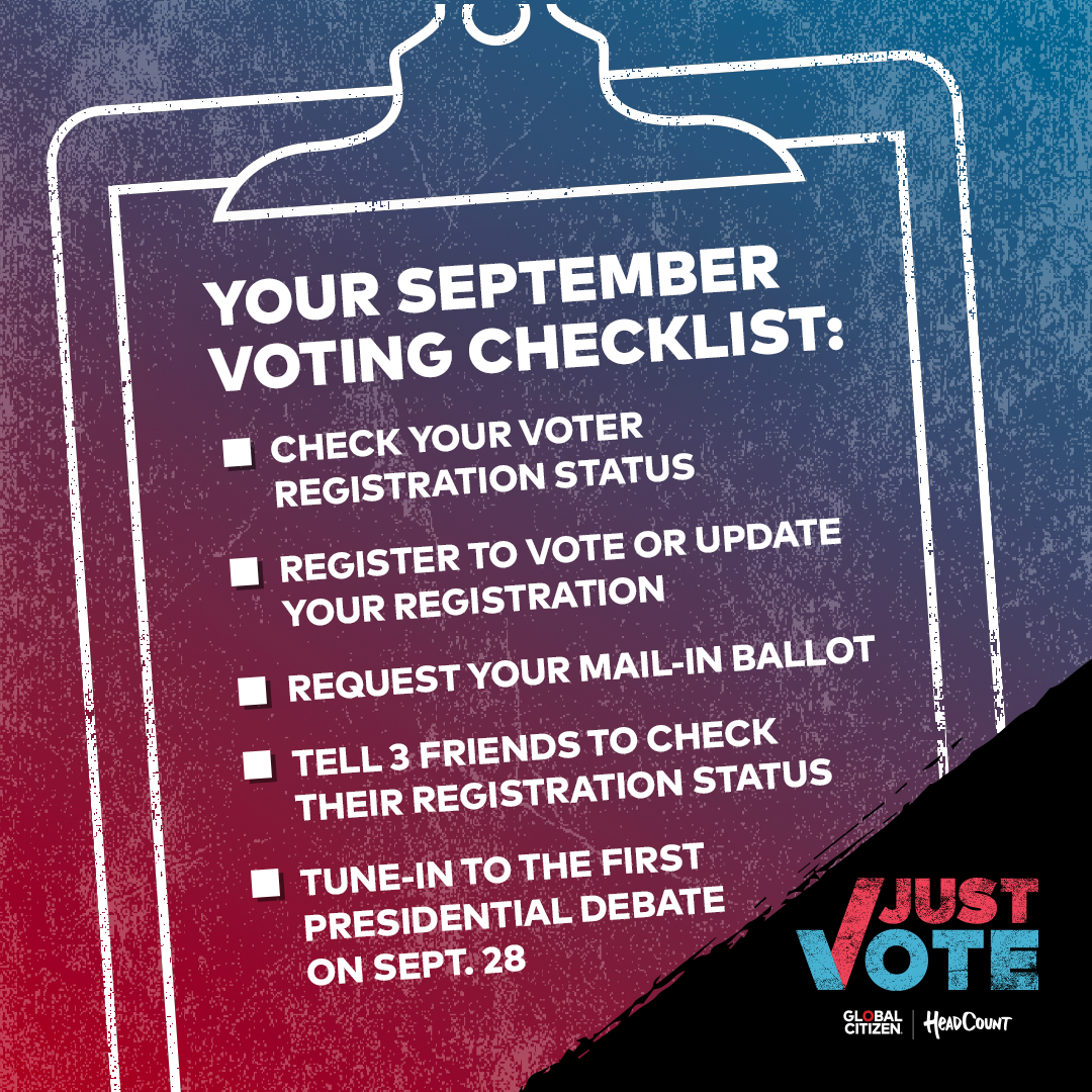 “As we get closer to the election, it is critical to ensure that young people have the tools to check their status and register to vote,” said ANDY BERNSTEIN, EXECUTIVE DIRECTOR OF HEADCOUNT. “We have less than 50 days to ensure that everyone can participate in our democracy. That’s why the work of Just Vote is so crucial, and why the team behind it - from HeadCount, to Global Citizen, to the corporate and foundation partners, to the artists themselves - is so dedicated to the cause.”