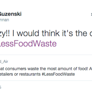 Throughout the #LessFoodWaste chat, we shared facts about food waste – many attendees were surprised by some of the stats. Many of us almost admitted our guilt towards create food waste in our own homes – from food going bad before we could consume it, to leftovers and forgotten about doggie bags.