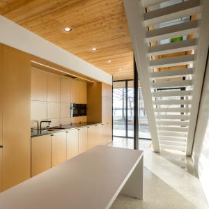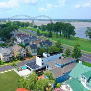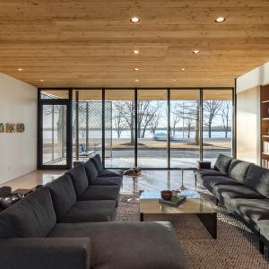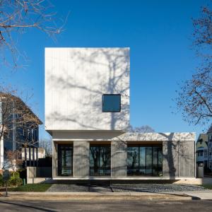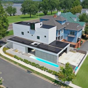 Located in Memphis on the banks of the Mississippi River, the civitas home project is a 2,800-square-foot residence that aims to be one of the first homes in America to be certified Zero Emissions, Zero Energy, and Reveal (AIA2030 Challenge), along with attaining LEED Platinum certification. It features two primary rectangular, flat-roofed forms, using structural insulated panels and cross-laminated timber for the first time, all clad in recycled aluminum and floor-to-ceiling, operable glass that easily opens to bring fresh air into the home.