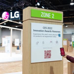Consistent with LG’s CES theme for 2022, The Better Life You Deserve, the sustainable exhibit was constructed entirely of recycled oriented strand board (OSB) plywood made by compressing wood scraps, and eliminating use of glue, paint and varnish. The exhibit design was simplified to facilitate easy recycling after the trade show.