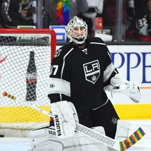All Kings players including Jeff Carter and Jeff Zatkoff warmed up prior to the game using rainbow stick tape – that the Kings Care Foundation auctioned to raise almost $20,000 – in addition to an in-arena You Can Play PSA featuring the Kings’ Dustin Brown and Tanner Pearson. The Kings’ mascot Bailey and Ice Crew also sported Pride-themed attire throughout the evening.