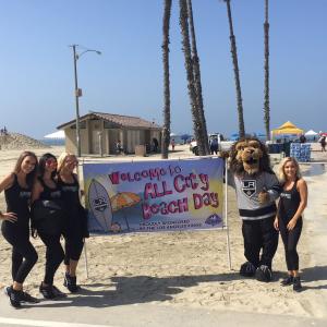 Earlier today, AEG’s Los Angeles Kings, partnered with the City of Long Beach to host the Long Beach All-City Beach Day for more than 2,000 youth, ages 5-14, from 32 Long Beach Parks, Recreation & Marine Department Day Camp and Summer Fun Day sites. Throughout the day’s activities which included beach sports, a dance contest, obstacle courses, sand sculpture activities and free play in the ocean, the LA King introduced ball hockey with the help of the Kings’ Ice Crew and team mascot, Bailey.