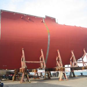 Ok, here’s how you retrofit a Stepnica Class container ship: First, you cut off the navigation bridge and raise it. Please note that this requires the use of a rather large crane. Now your ship can hold 10 % more containers. Then you modify the engine to make it more efficient at low speeds, you cut off the bulbous bow and put on a smaller one, and suddenly you are looking at a 5 % reduction in the fuel consumption of the ship.