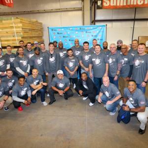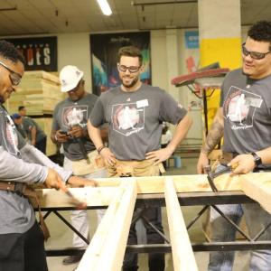 More than 40 active and former players on Wednesday gathered first at a Habitat for Humanity warehouse to help construct frames for two houses then hurried back to their hotel to change their clothes for an evening fund-raising event.