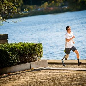 As a high school athlete, Yangzi played on his school’s football team, but was frustrated by the weight of his prosthetic leg.