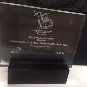The Manos al Agua-Intelligent Water Management Project was among the three finalists in the category of Social Impact, in which 40 projects took part. The recognition was awarded by CINTEL and WaterHouseCoopers.