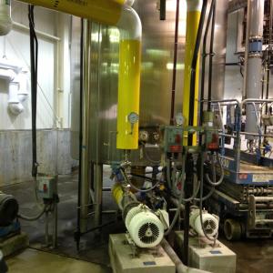 In the old process, this water was simply sent down the drain. Under the new system, the cans are passed through a “cooling shell” that uses the recycled water to cool the cans. A heat exchange system captures the heat from the water and transfers it into other processes.