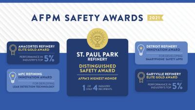 The St. Paul Park refinery is one of only four facilities in the industry to receive the Distinguished Safety Award (DSA), AFPM’s most prestigious honor, which is a first for the site.