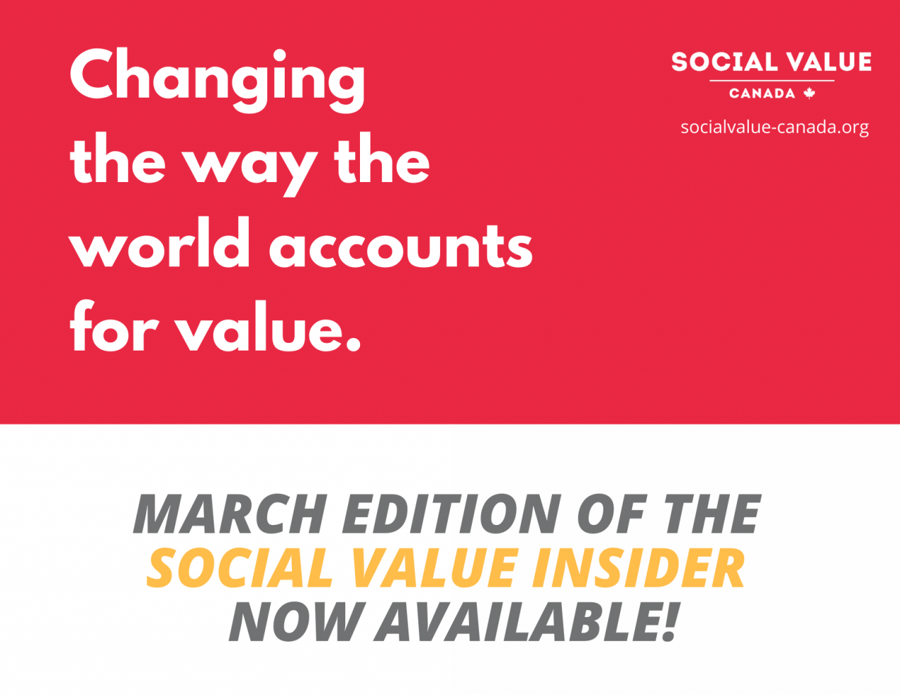 Check out the March Social Value Insider for upcoming events, information on the re-launch of the Canadian social value network and more!