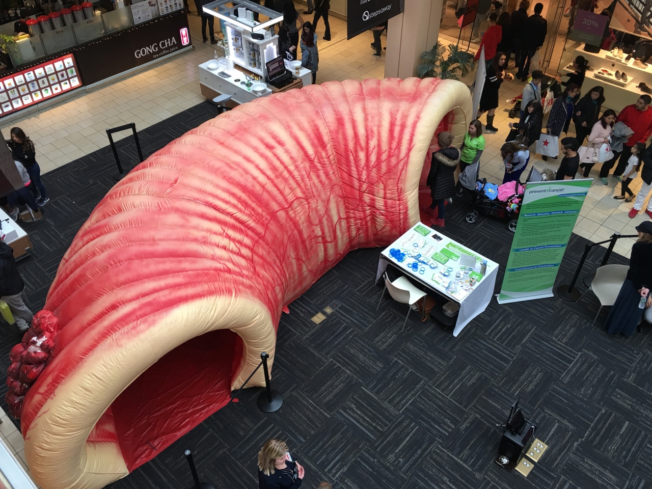 The Prevent Cancer Super Colon® is a unique, interactive educational tool that travels to communities across America with the message that colorectal cancer is Preventable. Treatable. Beatable.® This 20-foot-long replica gives visitors an up-close look at healthy colon tissue, tissue with