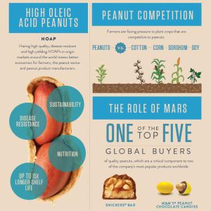 Mars Chocolate has committed to using 100 percent HOAPs in its products by 2017, working with peanut farmers, shellers and the industry as a whole to support the production of a sustainable supply of quality HOAPs by investing in science, creating more advanced breeding approaches, mitigating disease and encouraging greater agricultural efficiencies. In addition, the company has invested more than $1.4 million to support the efforts of the International Peanut Genome Initiative, a group of crop geneticists that includes representatives from Mars, to map the peanut genome.