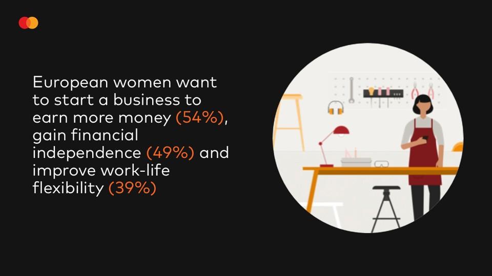 For many European women, the entrepreneurial spirit is inspired by an appetite to earn more money (54%), gain financial independence (49%) and improve work-life flexibility (39%), but motivations differ among generations.