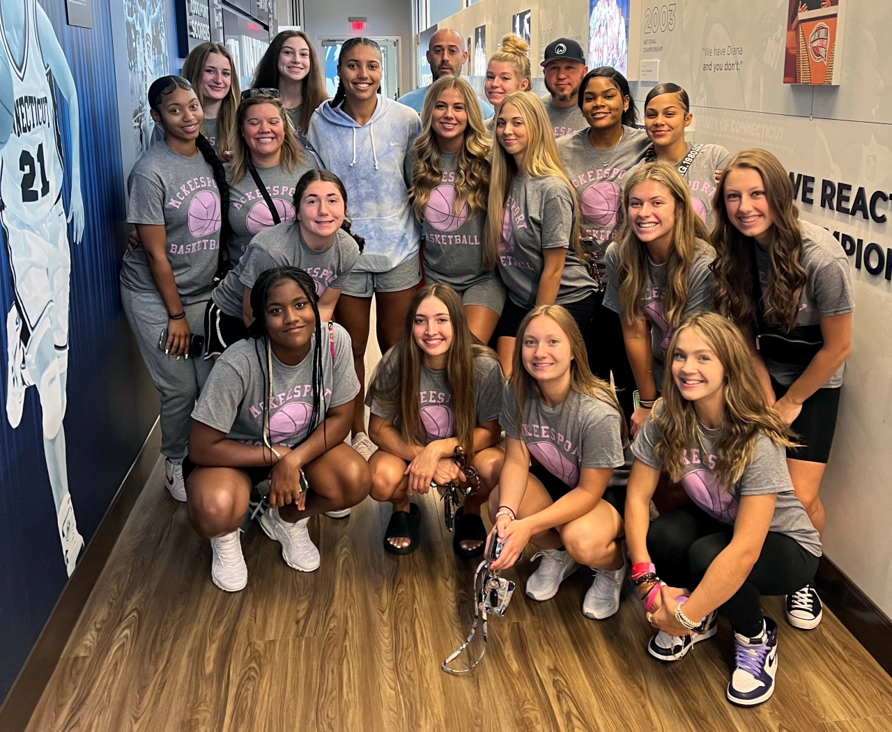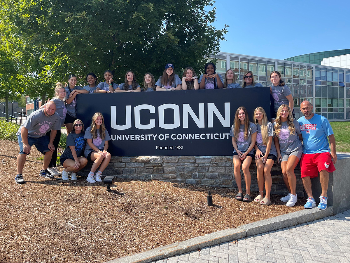 DICK'S Sporting Goods has developed a lasting partnership with the McKeesport School District and for the ceremony, supplied the buses for the team's trip to the Hall, located in Springfield, Massachusetts. Along the way, the team of 15 players, coaches and staff stopped at the University of Connecticut, where Swin won an NCAA championship before becoming a WNBA champion, winning an Olympic gold medal and securing her current role as the Vice President of Basketball Operations for the NBA’s New Orleans Pelicans. The Tigers toured the facilities and even got to walk on the court of the 11-time National Champion Huskies.