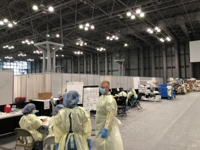 So, a team from Medtronic quickly installed several of the company’s technologies to create a system that allowed about 10 clinicians to remotely monitor about 400 patients at the Jacob K. Javits Convention Center.