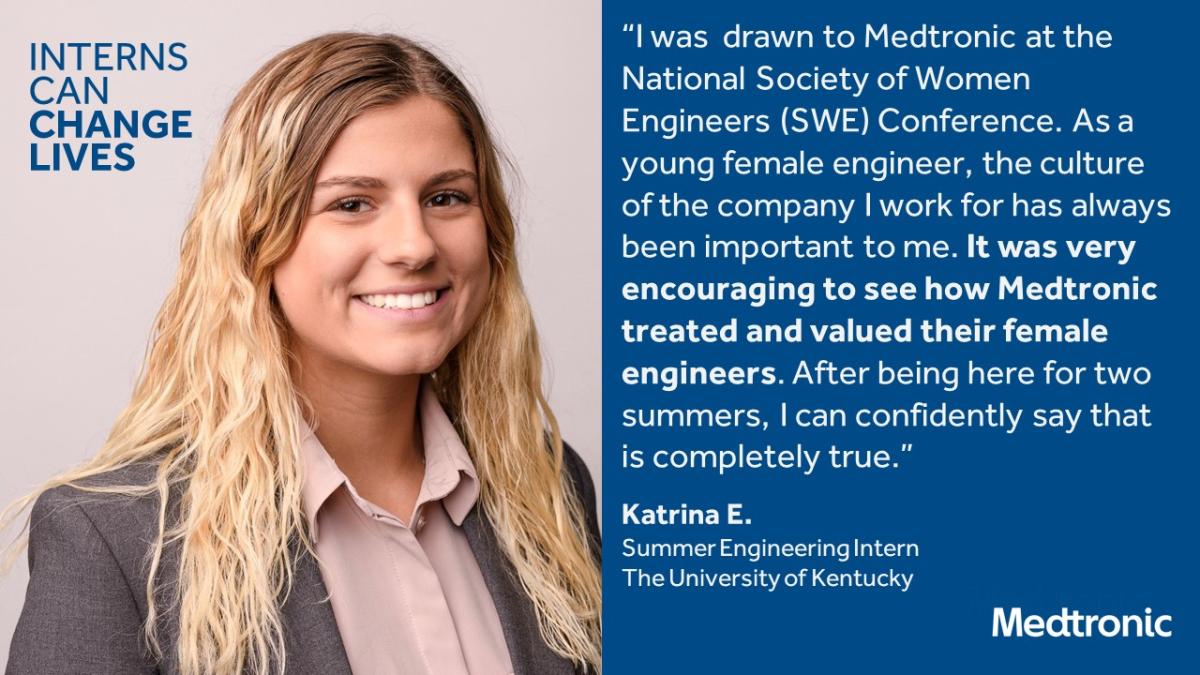 The Summer Internship Program is a critical pipeline for top, diverse, early-career talent. Last year, 77% of eligible interns became full-time employees. Bohn says it would be a dream-come-true if she could be among those who earn a full-time employment offer right out of college. “I think Medtronic is going to be the company for me,” said Bohn.