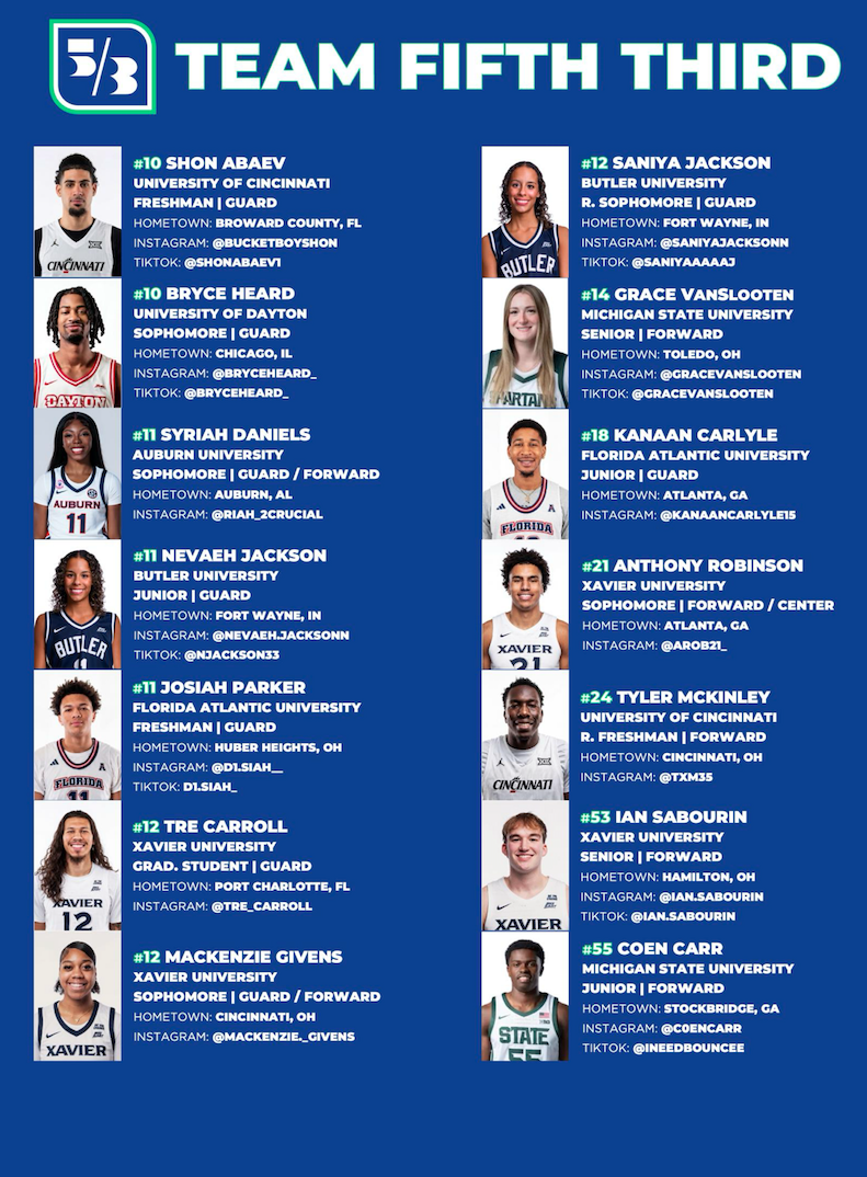 Team Fifth Third welcomes 30 Division I college basketball student-athletes to its growing Name, Image, and Likeness (NIL) program