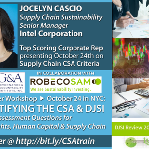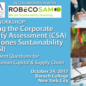 The aim of this workshop is to increase the participants’ knowledge about the methodology behind the Dow Jones Sustainability Indices (DJSI) and the RobecoSAM Corporate Sustainability Assessment (CSA). In this session, special focus will be on on selected criteria including Human Rights, Supply Chain, and Human Capital.