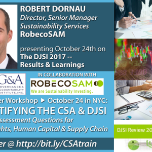- RobecoSAM's Robert Dornau, Director, Senior Manager Sustainability Services, presenting the DJSI 2017 Results & Learnings