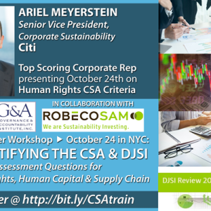 The aim of this workshop is to increase the participants’ knowledge about the methodology behind the Dow Jones Sustainability Indices (DJSI) and the RobecoSAM Corporate Sustainability Assessment (CSA). In this session, special focus will be on on selected criteria including Human Rights, Supply Chain, and Human Capital.