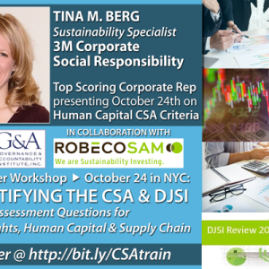 We asked our speakers to share with you some background on their companies experience completing the RobecoSAM CSA for the DJSI each year as well as what attendees can expect to learn from their session and advice they have for anyone considering attending the program. Click the links below to find out what they said and learn more about their background: