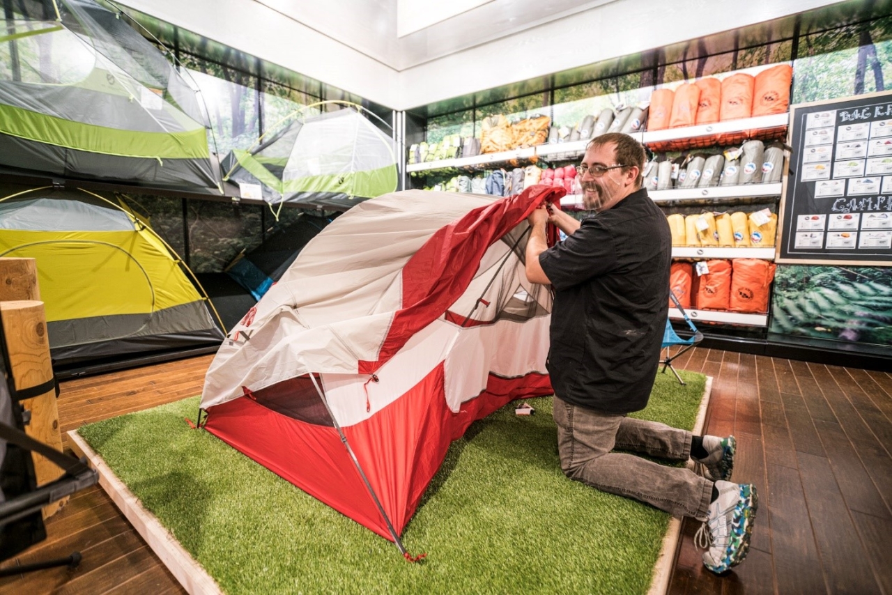 During a recent team-building exercise at the Public Lands store in Pittsburgh, Pa. the guides were randomly paired up with one another and challenged to see which team could pitch a tent the fastest.