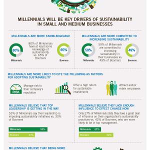 - Millennials believe they lack enough influence to effect change now. Only 27 percent of Millennials in management roles believe that they have a great deal of influence on their organization’s sustainability practices, and more than half (53 percent) of Millennials say that their leadership is impeding their company’s sustainability initiatives. The top decision makers in SMBs, such as owners and partners, are more likely to be Boomers.