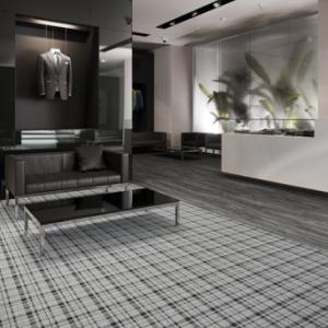 Manufactured according to International Living Future Institute standards that ensures a net positive impact for people and the environment as a Living Product, Pattern & Symmetry is also built to last. The weaving process creates a structure whereby backing and face yarns become one, delivering a hardy construction denser than traditional soft surfaces. The Heathered Hues yarn system that gives styles Rustic Plaid and Patterned Past their warm, wool-like essence is dematerialized for a low environmental impact. Additionally, no water is used in the yarn’s production.