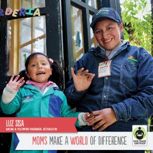 The campaign highlights five mothers who represent the women who grow and harvest Fair Trade Certified coffee, tea, chocolate and roses. The featured mothers include Kyomugisha Joy of Rwanda, who is working to establish a training program to help the women in the community become more involved in tea production, and Luz Sisa, a rose farmer in Ecuador who may soon be able to own her own home, thanks to a community housing program funding by the Fair Trade premium.