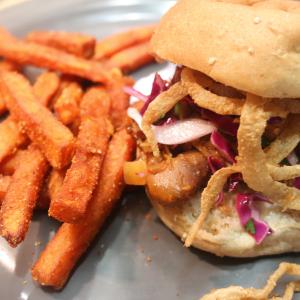 The pop-up dining events were held during lunch at Belmont University and during dinner at Lipscomb University. At the free events, which were open to all members of the campus community, guests were invited to sample char siu pork and jackfruit barbeque sandwiches with Thai red curry coconut sauce. The sandwiches were accompanied by sweet potato fries with blackberry sriracha ketchup.