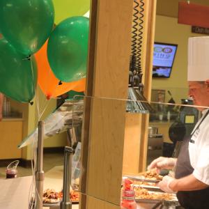 Jackfruit, an exotic fruit native to parts of southern and southeast Asia, is part of the fig, mulberry, and breadfruit family. This nutrition-packed superfood is an excellent source of vitamin B6, potassium, and vitamin C. It is one of the largest tree fruits in the world, weighing up to 80 pounds. At the “You Don’t Know Jack” events, which were playfully named to call students’ attention to a fruit most are unfamiliar with, jackfruit was creatively incorporated into traditional pulled pork barbeque sandwiches to enhance their flavor and nutritional value.