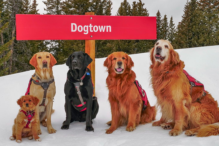 In a real emergency, Mookie and his furry crew – five dogs total – would be searching for more than a piece of gear. The astute noses of these carefully trained canines can sniff out skiers trapped by an avalanche. “Many backcountry skiers, snowboarders and snowmobilers carry an avalanche beacon on them, but if they do not have one, the dogs are our best chance to find someone,” Warkentin says.