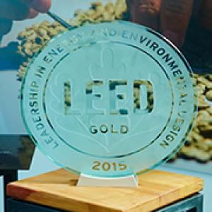 LEED® (Leadership in Energy and Environmental Design)– a voluntary certification programme developed by the US-based NGO, Green Building Council (USGBC) – is one of the most rigorous certifications recognising exceptional environmental quality of buildings. It not only evaluates the energy- and water-efficiency of a building, it also weighs aspects such as employees’ health and wellbeing at the workplace, and infrastructure for environmentally low-impact mobility.