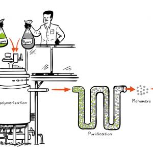 Carbios has developed a unique and sustainable technology using highly specific enzymes that can recycle much broader PET plastics and polyester fibers feedstock than other recycling technologies. This innovative process creates recycled PET, equivalent to virgin PET, that can be used for applications like bottles and other forms of packaging.