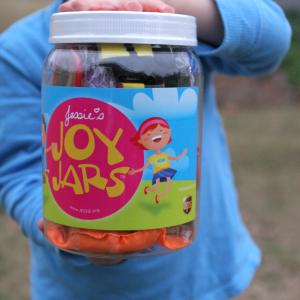 At the time, Jessie was in the middle of a ten month battle with two brain tumors. To spread hope, joy and love to other kids who were fighting cancer, Jessie began filling jars with her own toys and games. These jars became known as JoyJars®. Her dad shipped them to other sick kids and each JoyJar cost the Rees family about $20.