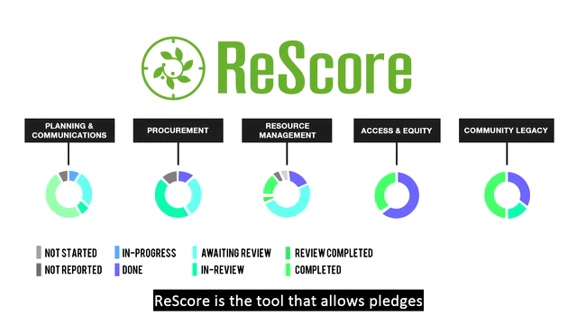 The app displays real-time performance via easy-to-understand project dashboards, providing event organizers with data-driven insights to accelerate actionable, measurable impact. For example, sporting event organizers can use ReScore to estimate greenhouse gas emissions from events, adopt best practices to prevent waste and conserve water during events, learn about how events have successfully improved inclusivity at their events, and more.