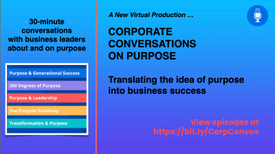 Phil Preston, CEO of The Business Purpose Project and Lynne Filderman, Founder of Curation On Purpose LLC are pleased to announce the second installment of their virtual production, Corporate Conversations on Purpose, a series of 30-minute virtual conversations with business leaders who offer their expertise and candid insights in navigating purpose-based transformations.