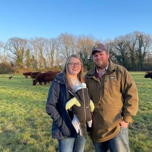 Isobel and James Wright are first generation farmers from West Sussex and have won the use of a TH telehandler. They are halfway through their first tenancy on the Wiston Estate where they keep a herd of suckler cows and have started rearing calves too. James also works for an agricultural software company, Breedr.