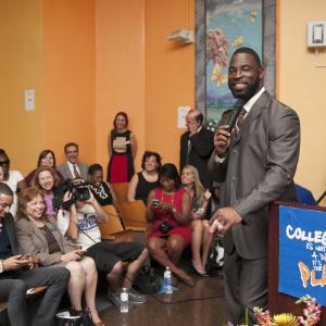 Justin Tuck, who was joined by his wife Lauran today in announcing the program to students and parents at Children’s Aid College Prep, said sports opened doors for him when it came to getting a college education. “Many kids in the rural Alabama community where I grew up weren’t so fortunate and never considered college a real possibility,” said Tuck. “The CAS College Savers program would have made a huge difference in their lives and it has the potential to make a real difference in the lives of low-income New York City children.”