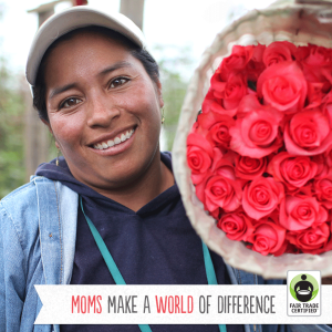 During the weeks leading up to Mother’s Day, which falls on the same weekend as World Fair Trade Day (May 11-12), families are encouraged to “Celebrate Mother’s Day the Fair Trade Way” by giving mothers gifts, such as chocolate and roses, that feature the Fair Trade Certified label. This label helps ensure that the farmers and workers who grew the products worked in safe conditions, protected the environment, and earn Community Development Premiums to reinvest back into their communities.