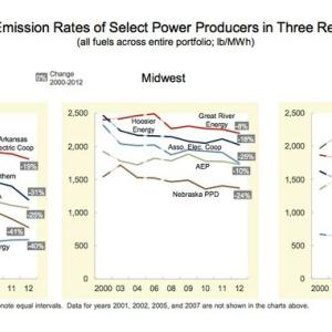 The report also shows that major power companies in the Southeast, Midwest and Southwest regions have all seen declines in CO2 per megawatt-hour produced since 2000, with power producers in the Gulf South and Southeast (Entergy Corporation, Dominion and Southern Company) achieving some of the deepest reductions.