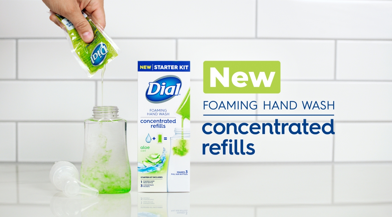 With their long-standing history of supporting handwashing education, healthy hygiene habits, and sustainability practices, Dial provides the clean consumers count on. As Dial continues to look towards the brand’s future, they have focused on sustainability with their newest game changing innovation Dial Concentrated Refills. Consumers are washing their hands more than ever before and the average consumer uses more than 8 single used plastic bottles per year (based on Numerator Shopper Metrics Report, last 52 weeks ending 3-7-21). To reduce single use plastic, we’ve launched a solution: Concentrated refills that use 95% less plastic (using (1) packet vs purchasing (1) Dial 7.5oz foaming soap bottle.) An accessible, reliable, and easy way to lessen the impact on the planet. The Concentrated Refills carton packaging is made with 100% paper-based materials and the packets are recyclable through the Dial partnership with TerraCycle.